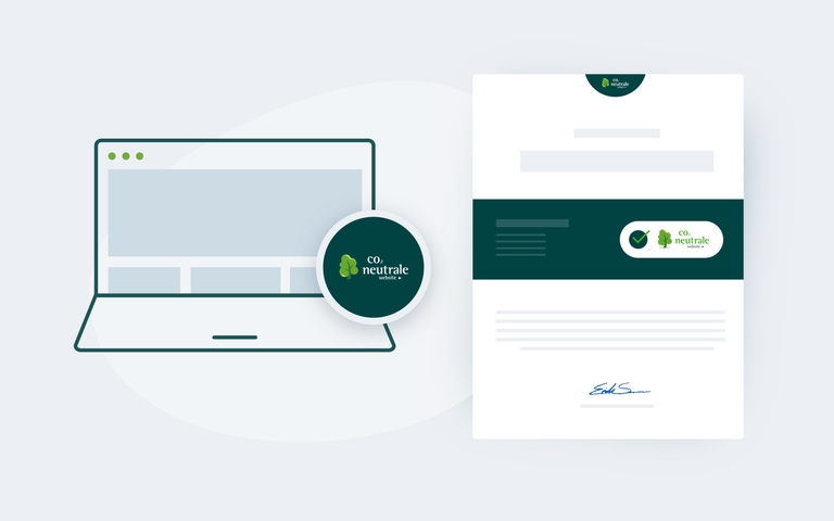 Alle Teilnehmer können das bekannte grüne Symbol auf ihrer Website verwenden. Wenn Besucher auf das Symbol klicken, wird das individuelle Zertifikat des Unternehmens angezeigt. Dies ist ein Beweis dafür, dass das Unternehmen seine CO2-Emissionen neutralisiert hat. Symbol und Zertifikat können nur von den Teilnehmern der Initiative verwendet werden