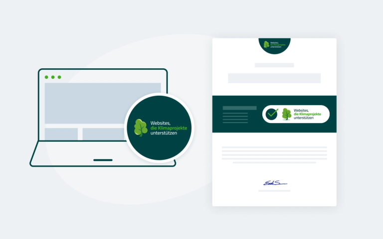 Alle teilnehmenden Websites dürfen das bekannte grüne Icon verwenden. Wenn Besucher auf das Icon klicken, öffnet sich die individuelle Zertifikatsseite des Unternehmens. Dort wird deutlich gezeigt, dass das Unternehmen Teil der Initiative ist und kontinuierlich Klimaprojekte unterstützt. Icon und Zertifikat dürfen ausschließlich von verifizierten Mitgliedern genutzt werden.